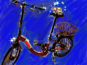 Mitbewohner auf Spaziergangs- und Autokorso-Fahrrad, flitzerot. (Dezember 2021)